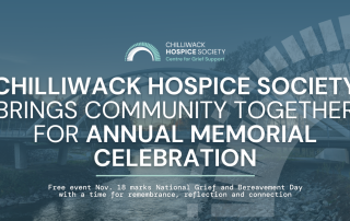 Throughout this year, Chilliwack Hospice Society’s Community Education Manager, Deanna Fedorkew, has facilitated a series of memorial gatherings, workshops, and wellness activities designed to support people navigating grief, dying, and end-of-life planning. Special opportunities for rituals and remembrances included the [...]