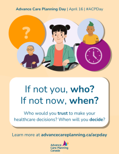 Advance care planning gives people the opportunity to consider what matters most to them before decisions need to be made under pressure. It can help reduce stress for loved ones, support clearer communication, and guide care that reflects a person’s values and wishes. ACP Canada says it is never too early to begin these conversations.