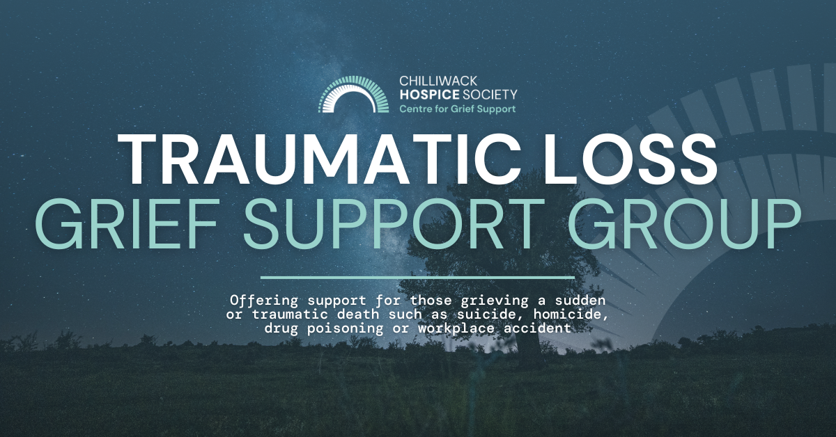 Chilliwack Hospice Society is offering a Traumatic Loss Grief Support Group beginning Tuesday, February 17 that meets once weekly for eight weeks consecutively from 6:30–8:30pm. The group is for, but not exclusive to, those grieving a sudden or traumatic death such as suicide, homicide, drug poisoning, or workplace accident.
